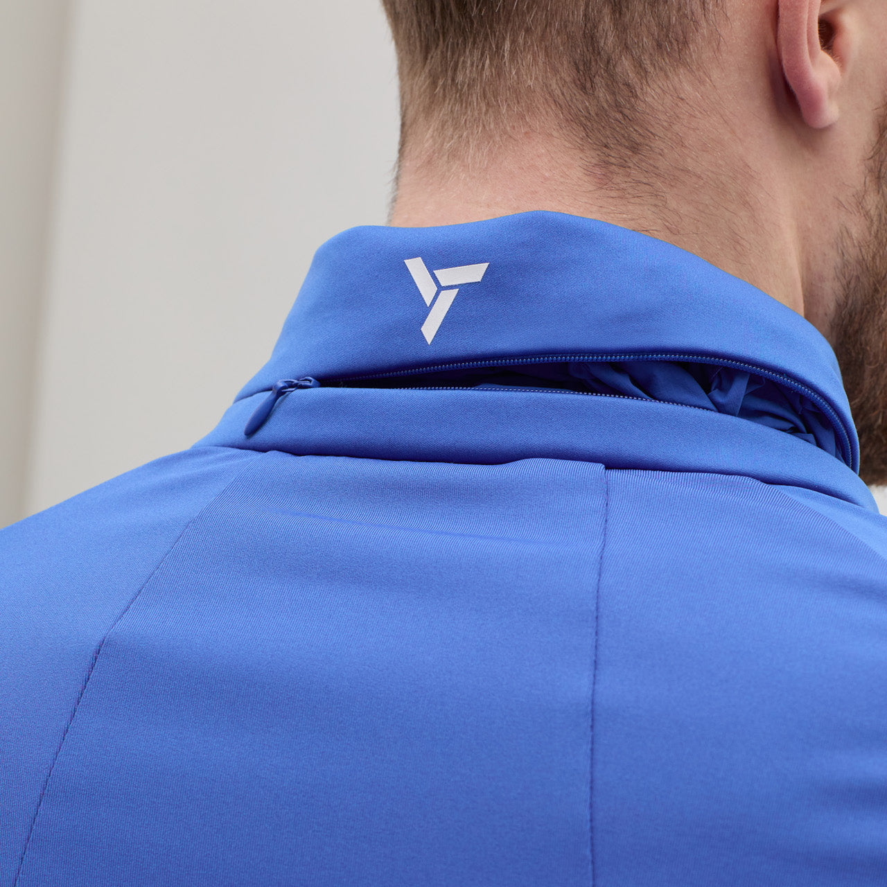 The Cassiano men's jacket combines Softshell Light materials with a Quatroflex Power membrane (10,000 mm water column, 10,000 g/m²/24h breathability) and lightweight QuatroFlex Therm and Mesh panels.