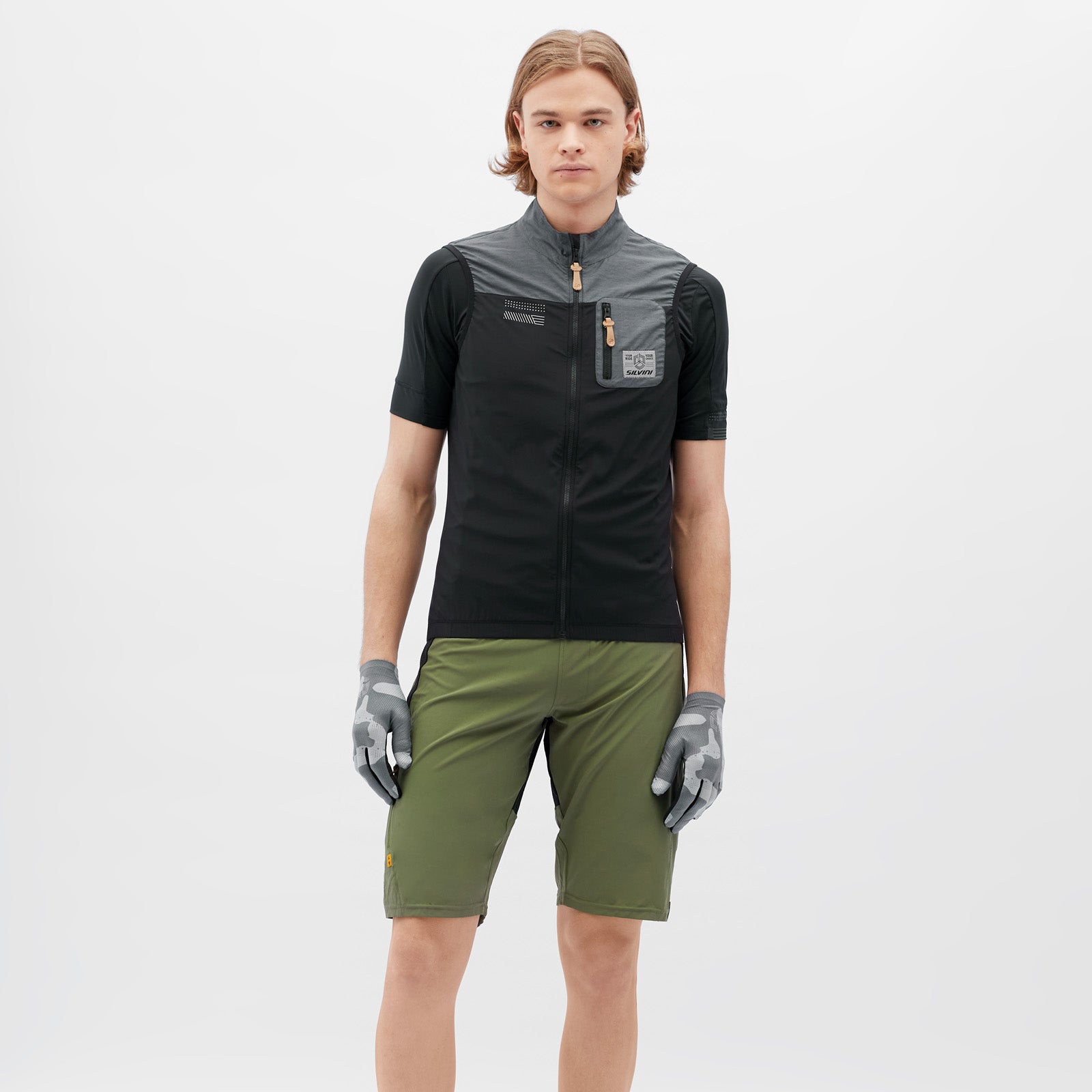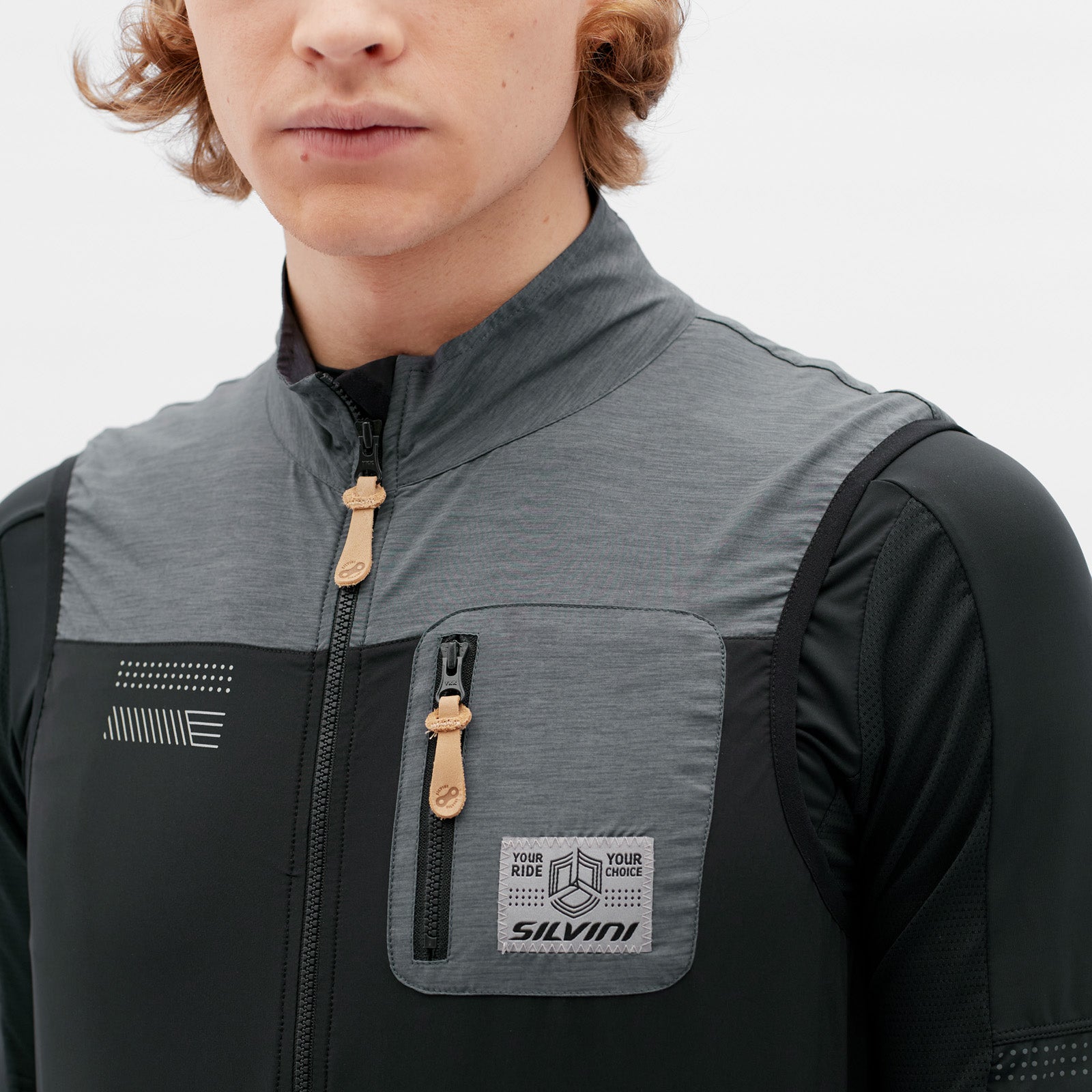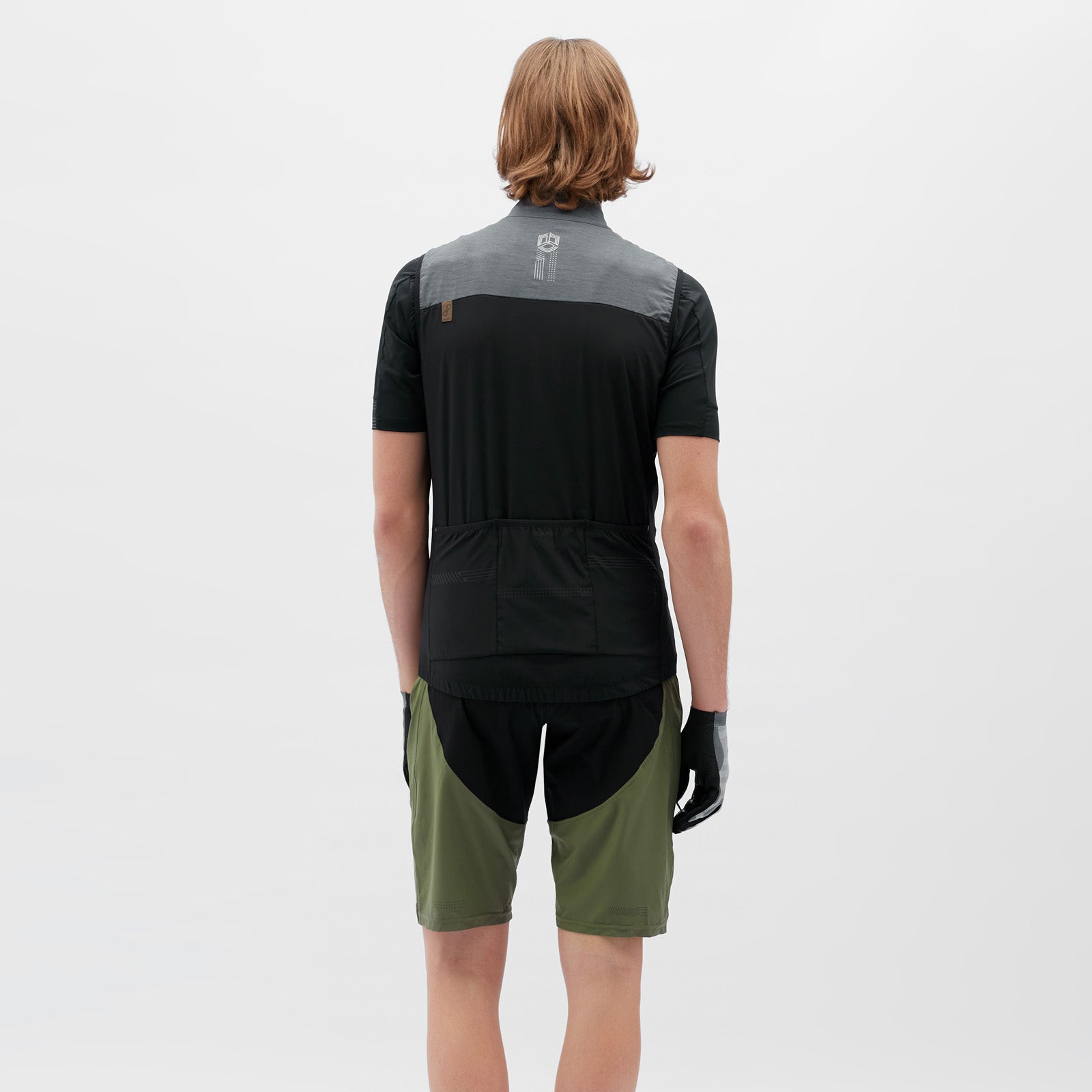 Men’s Cairo vest in lightweight, breathable Woven Light, slightly tailored, with three back pockets, zip pocket, and reflective details. Ideal for gravel biking and cycling.