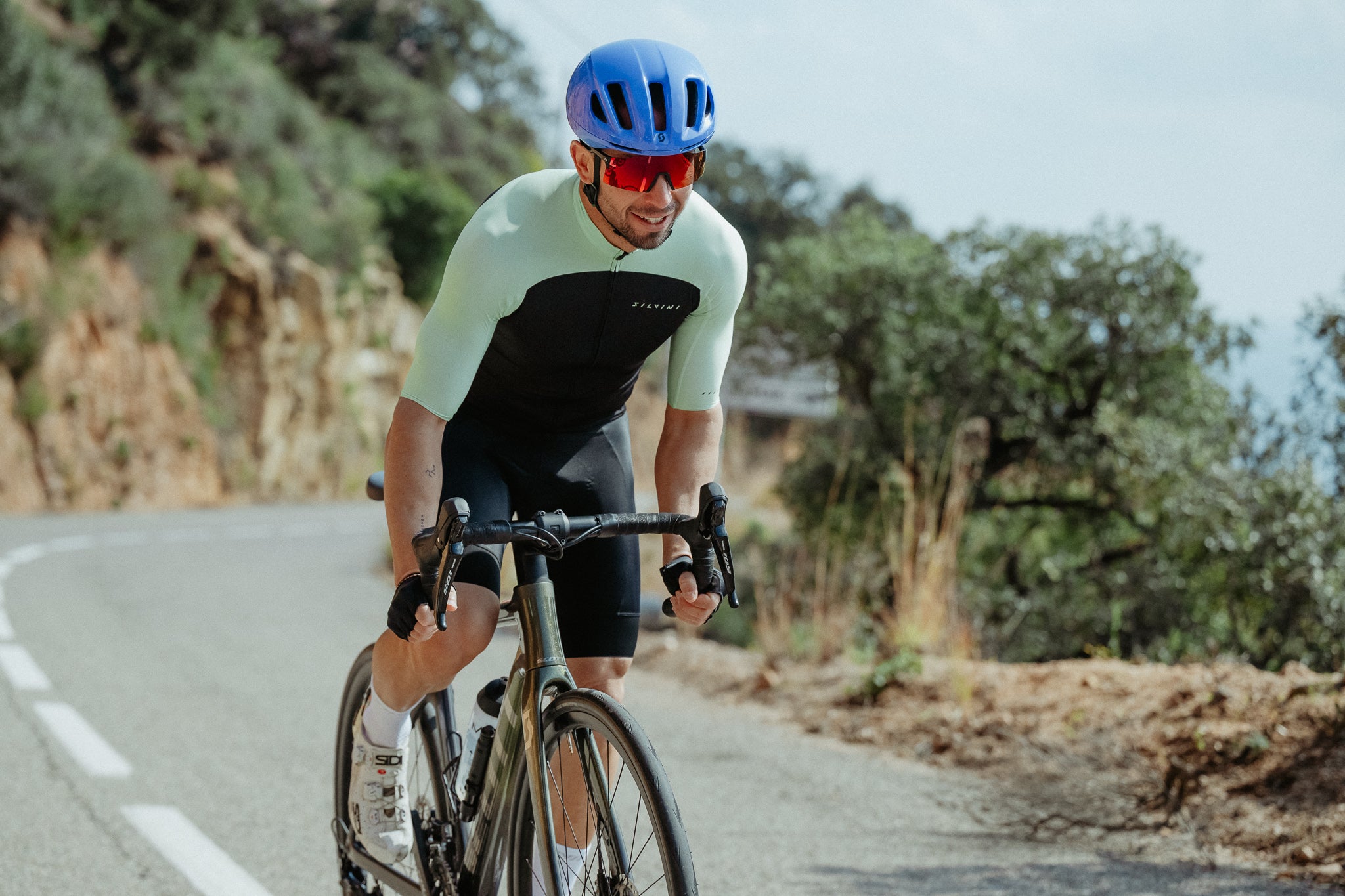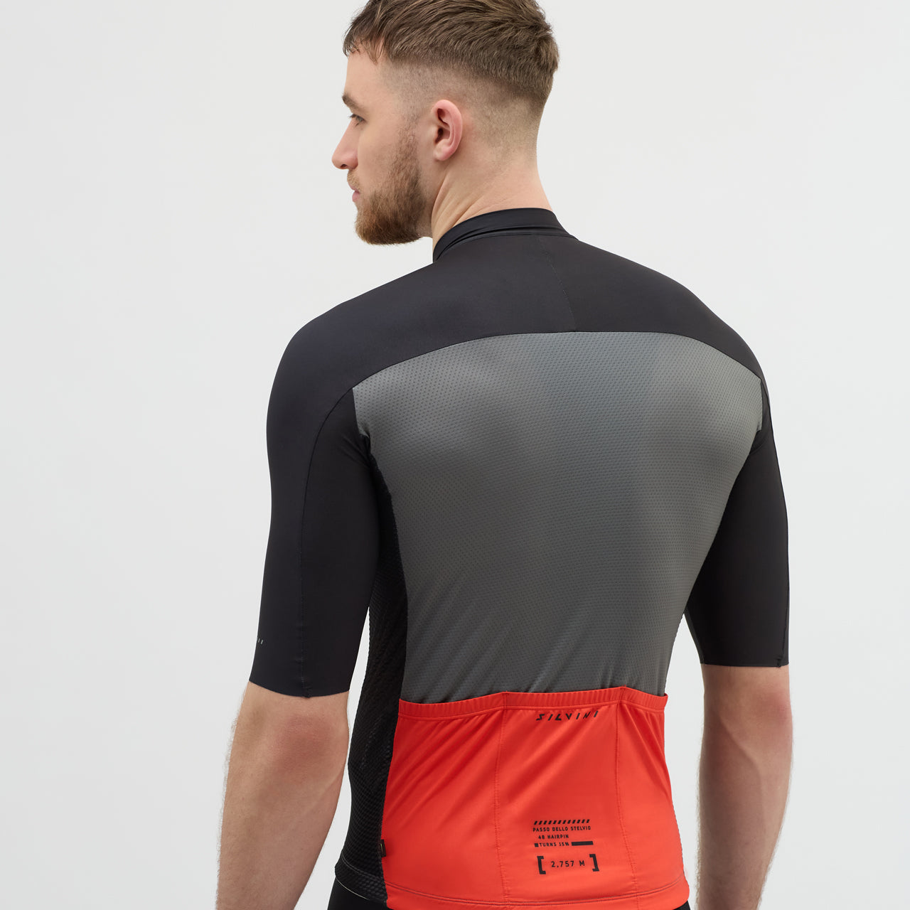 Men’s road jersey Stelvio with slim fit, made from lightweight Light MESH. Full-length zipper, triple rear pocket, reflective details, and 3D design for perfect cycling position.