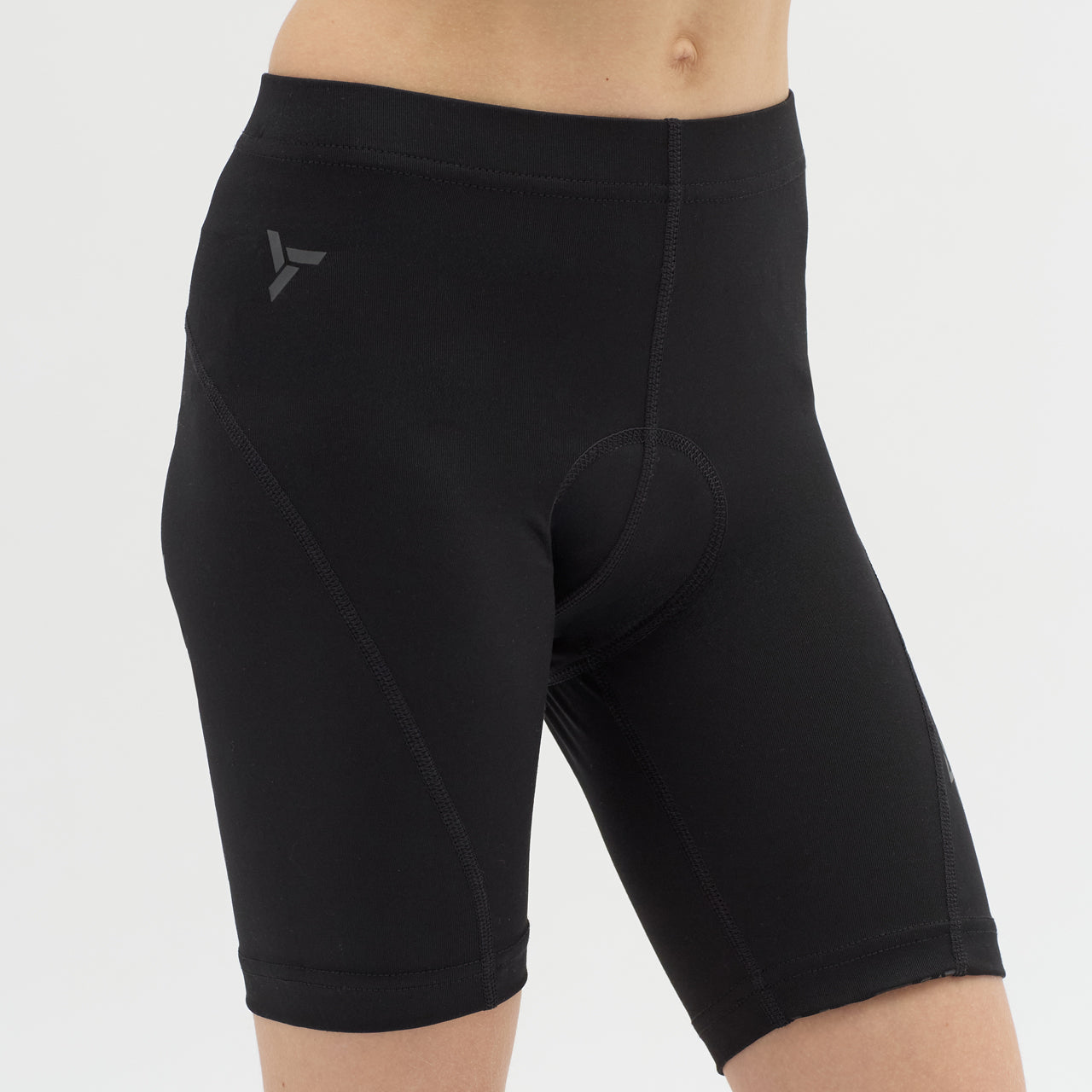 Children's elastic cycling shorts with Basic+ insole, made of Compress power and QuatroFLEX materials. The inside of the legs is lined with a non-slip silicone print, there are reflective elements.
