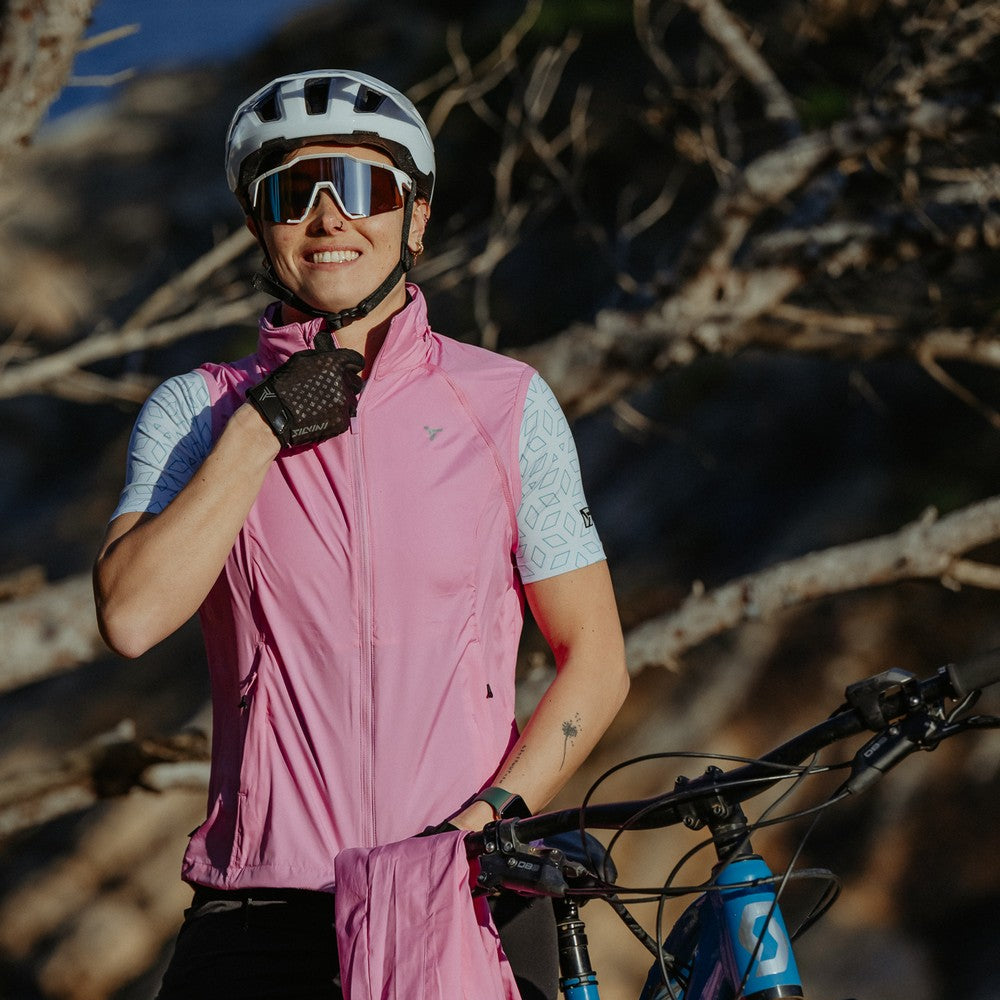 The Vetta is a women's lightweight jacket with removable sleeves, made of windproof, breathable and durable Windbreaker material. Thanks to the detachable sleeves, the jacket can be transformed into a practical vest in a few seconds. The jacket is characterized by a loose cut, a full-length YKK® zipper in the front, two side zippered pockets and a medium-sized pocket on the back. The entire jacket can be easily packed into this pocket and conveniently transported under a saddlebag or attached to the handlebars of a bicycle. The sewn-in straps with Velcro, which are part of the packed state of the jacket, will help you to fasten them. The back part of the jacket is elongated, and there are elastic bands on the sides, which allow regulation of the width of the jacket. The hood, hidden in the collar, has its own drawstring for optimal comfort. The sleeves are finished with a wider rubber hem, and reflective elements are placed throughout the jacket, increasing safety in the dark and in reduced visibility. This multifunctional jacket is suitable not only for cycling, but also for a wide range of outdoor activities.