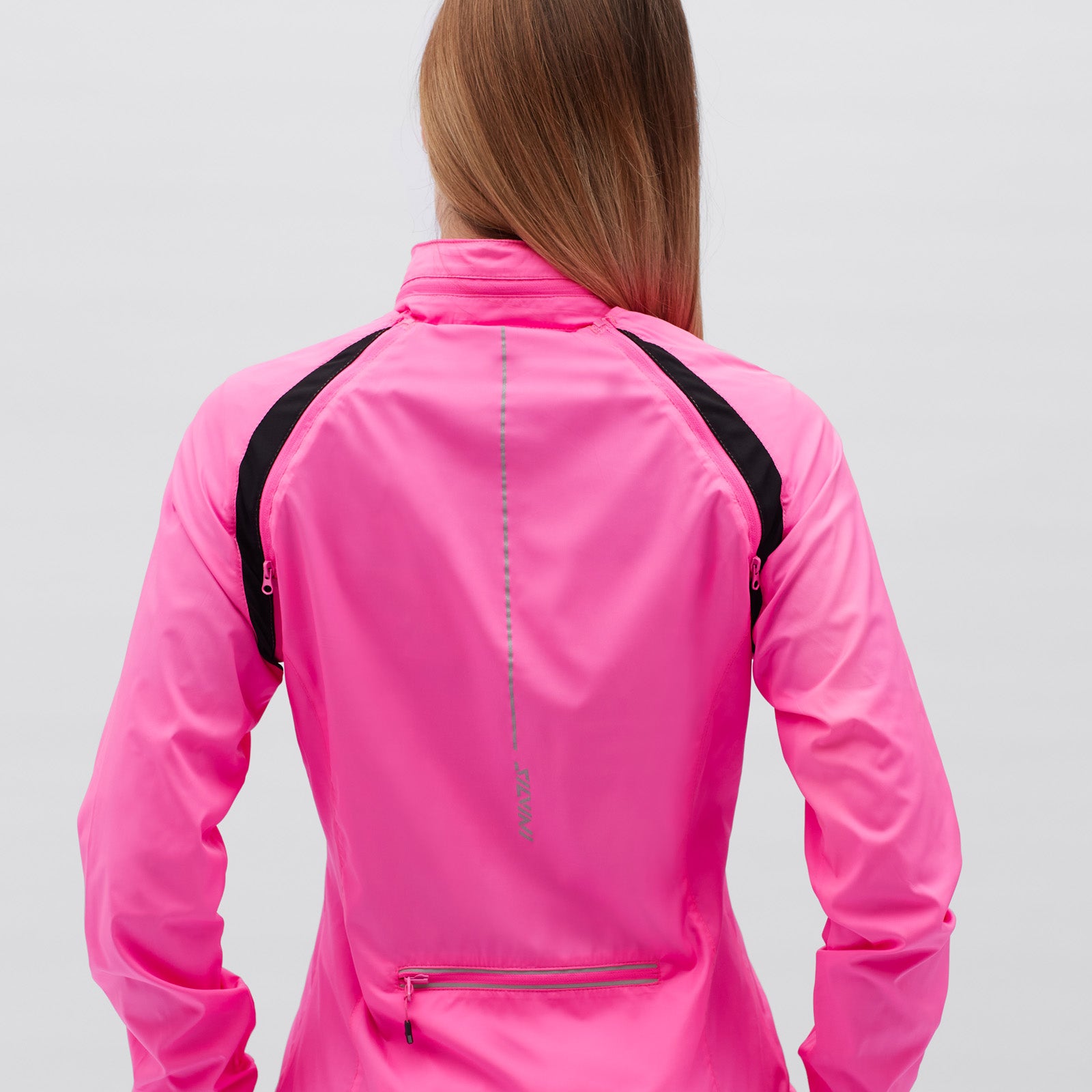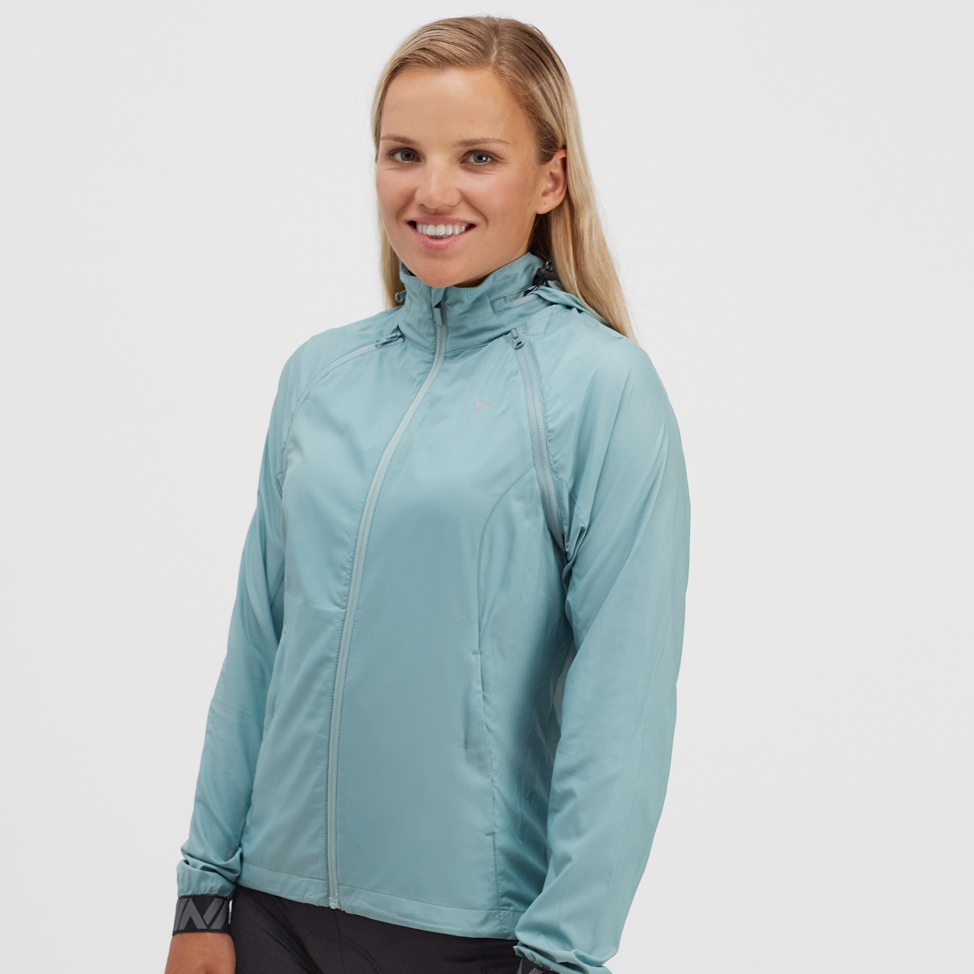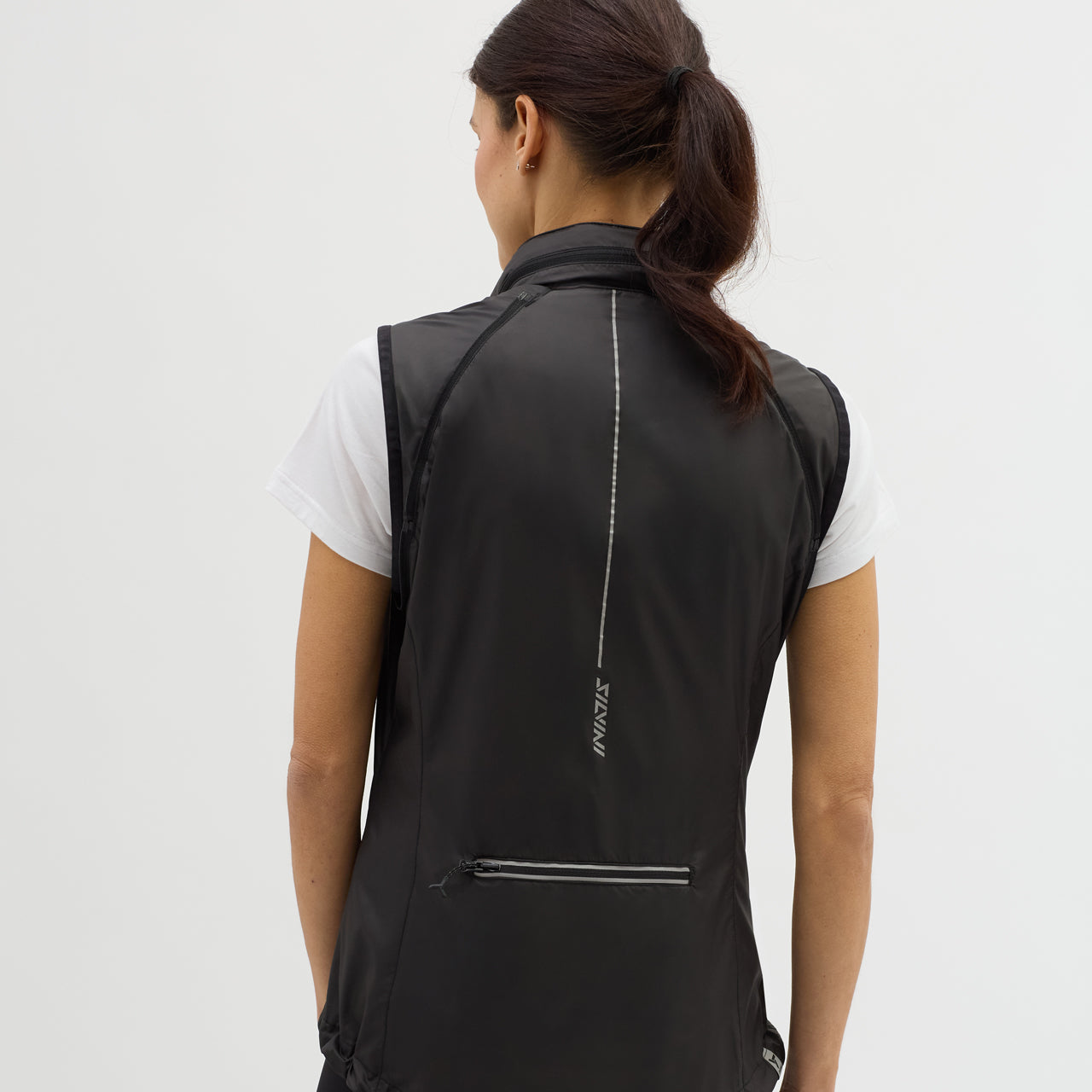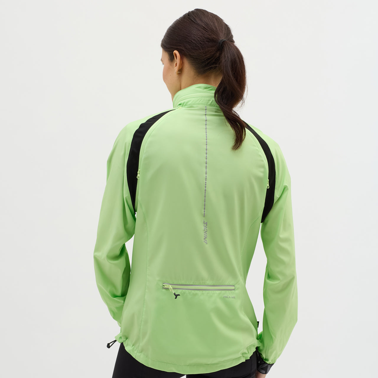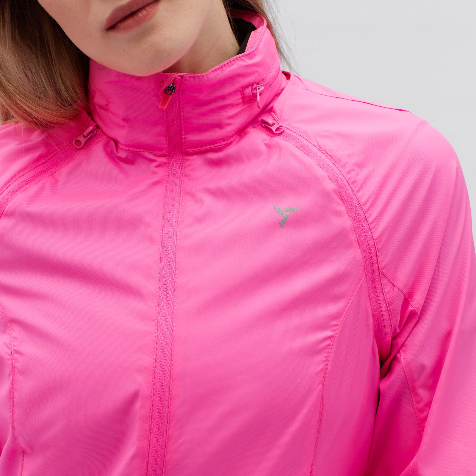 Women's windproof jacket made of Windbreaker material, packable in a small bag. By unbuttoning the sleeves, it turns into a vest, the hood can be folded into the collar. It has three zipped pockets, lower hem closure and reflexes.
