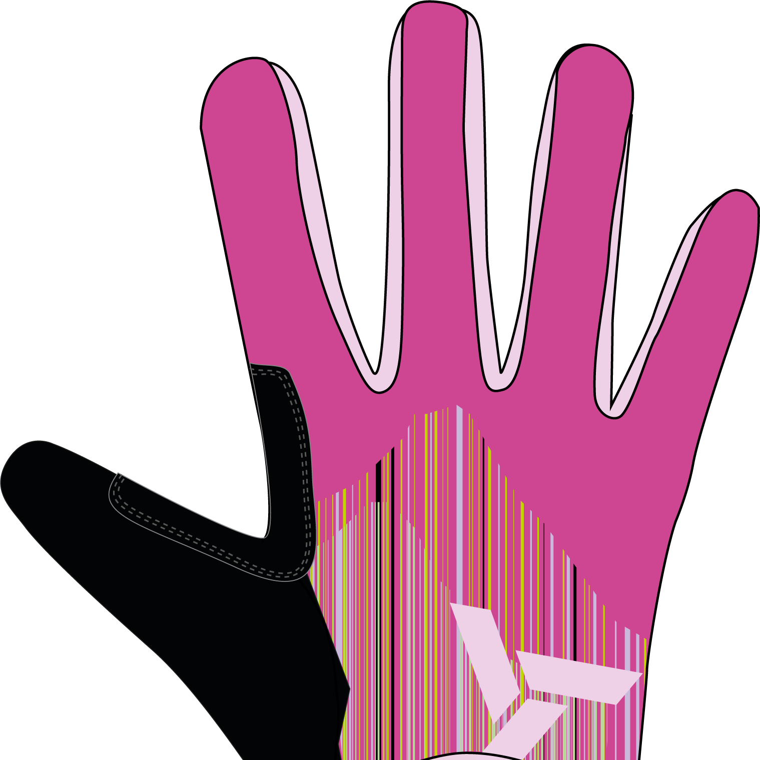 Children's long-fingered gloves made of flexible and breathable Light MESH material on the upper side. The padded palm is made of artificial leather with a silicone anti-slip print. The gloves have an elastic hem.
