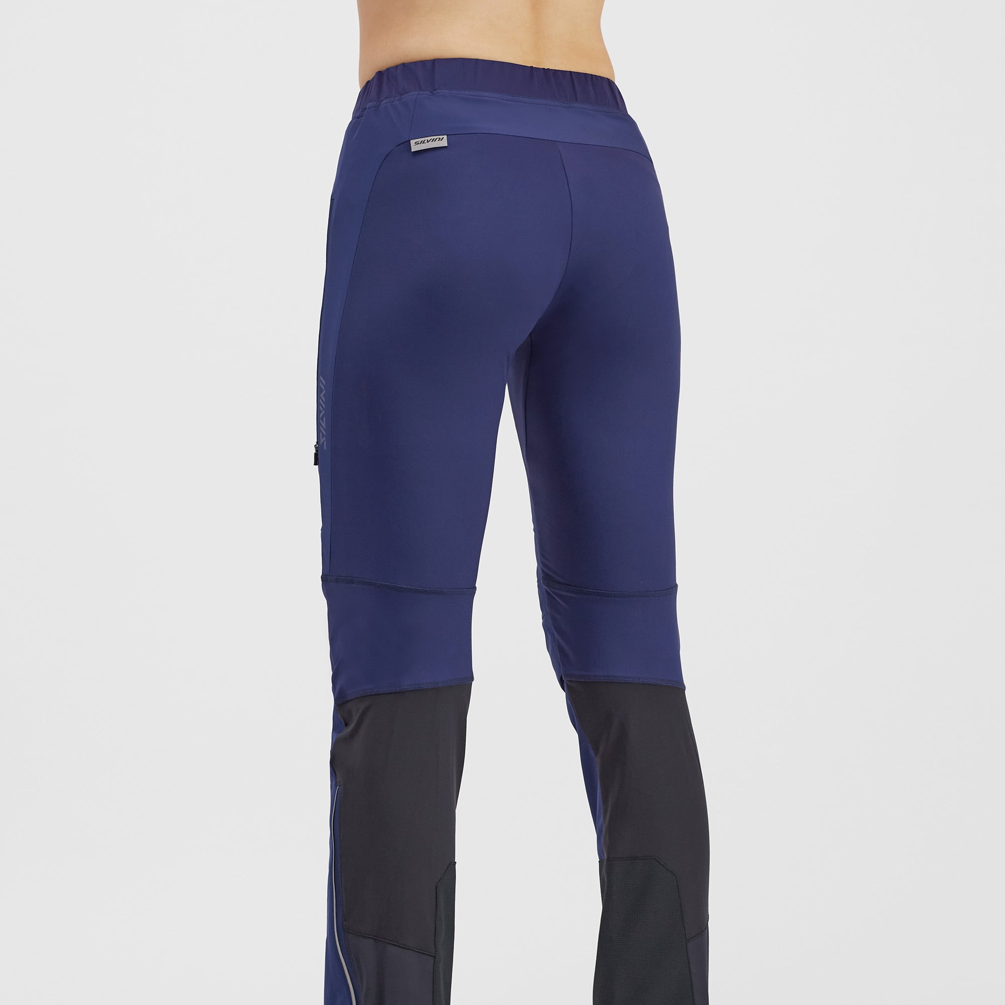 Women's windproof, breathable Soracte pants for ski touring, cross-country skiing, and outdoor activities. Anatomical fit, elastic knees, and reflective details ensure comfort and safety.