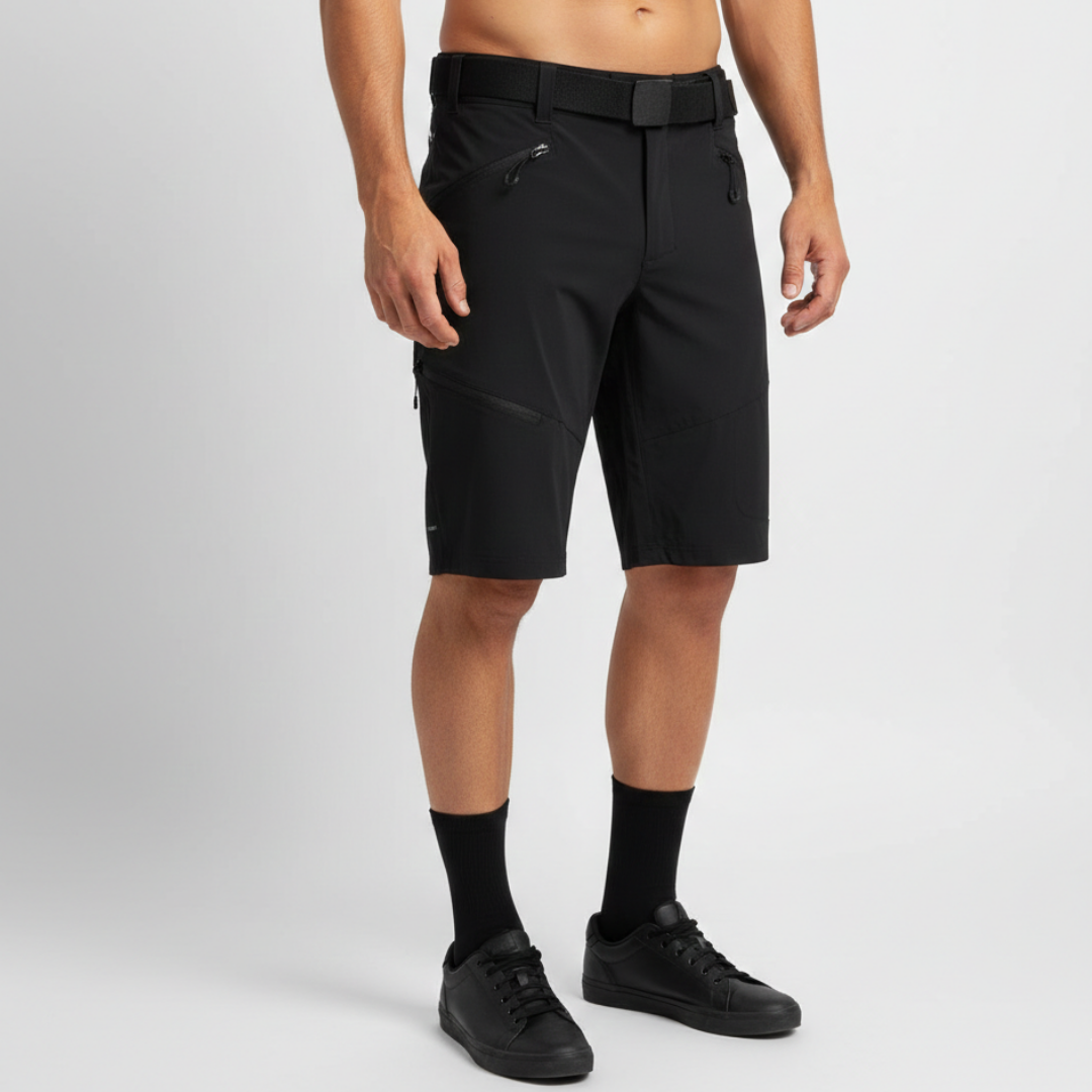 Shorts de cyclisme pour hommes en tissu léger Woven Light avec un excellent ajustement, 4 poches, zips YKK et éléments réfléchissants.