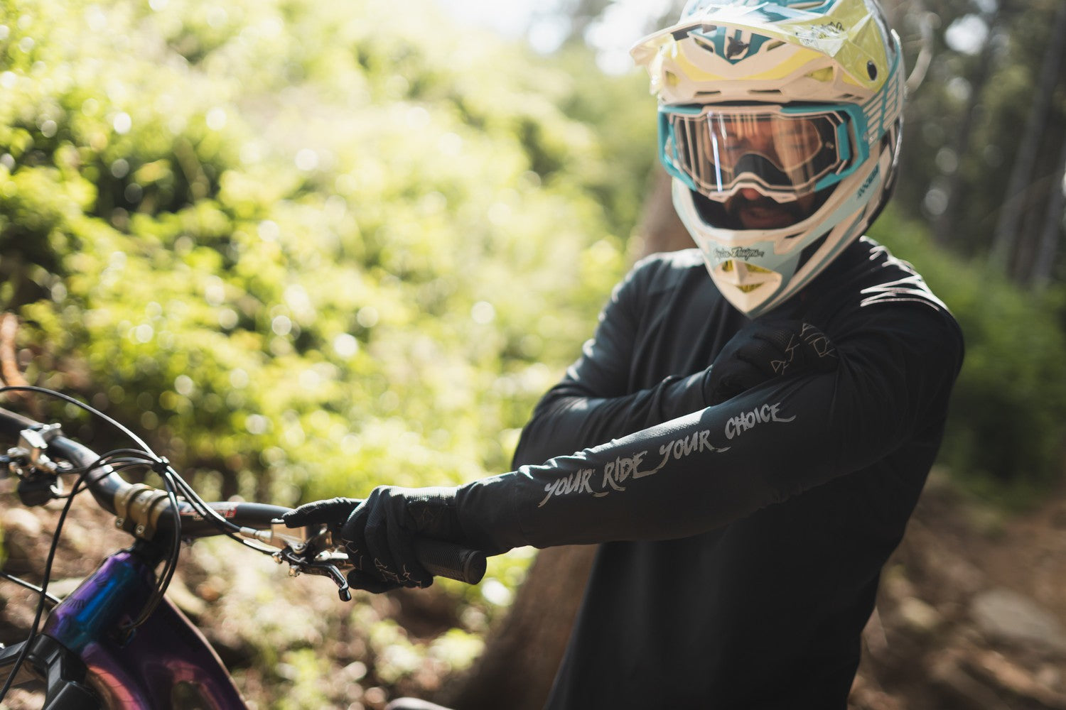 Maillot enduro pour homme avec une coupe ample et des manches longues, fabriqué en matériau élastique Light MESH pour la respirabilité et l'évacuation de l'humidité.