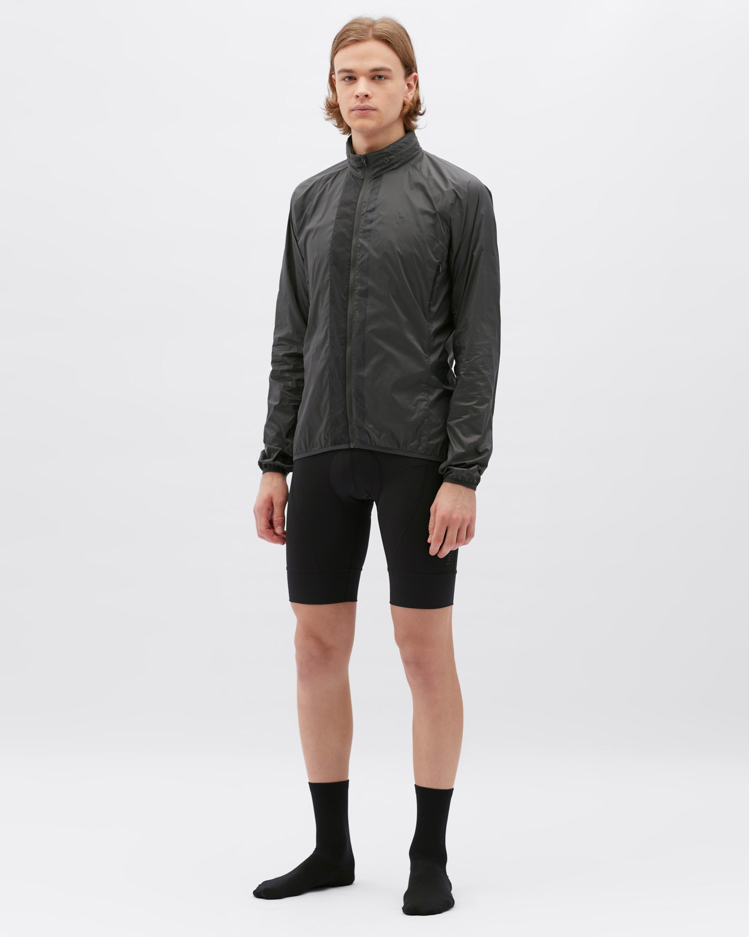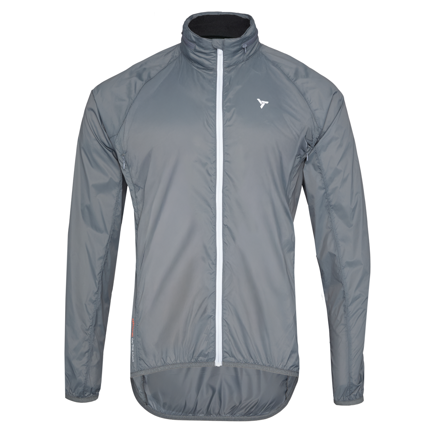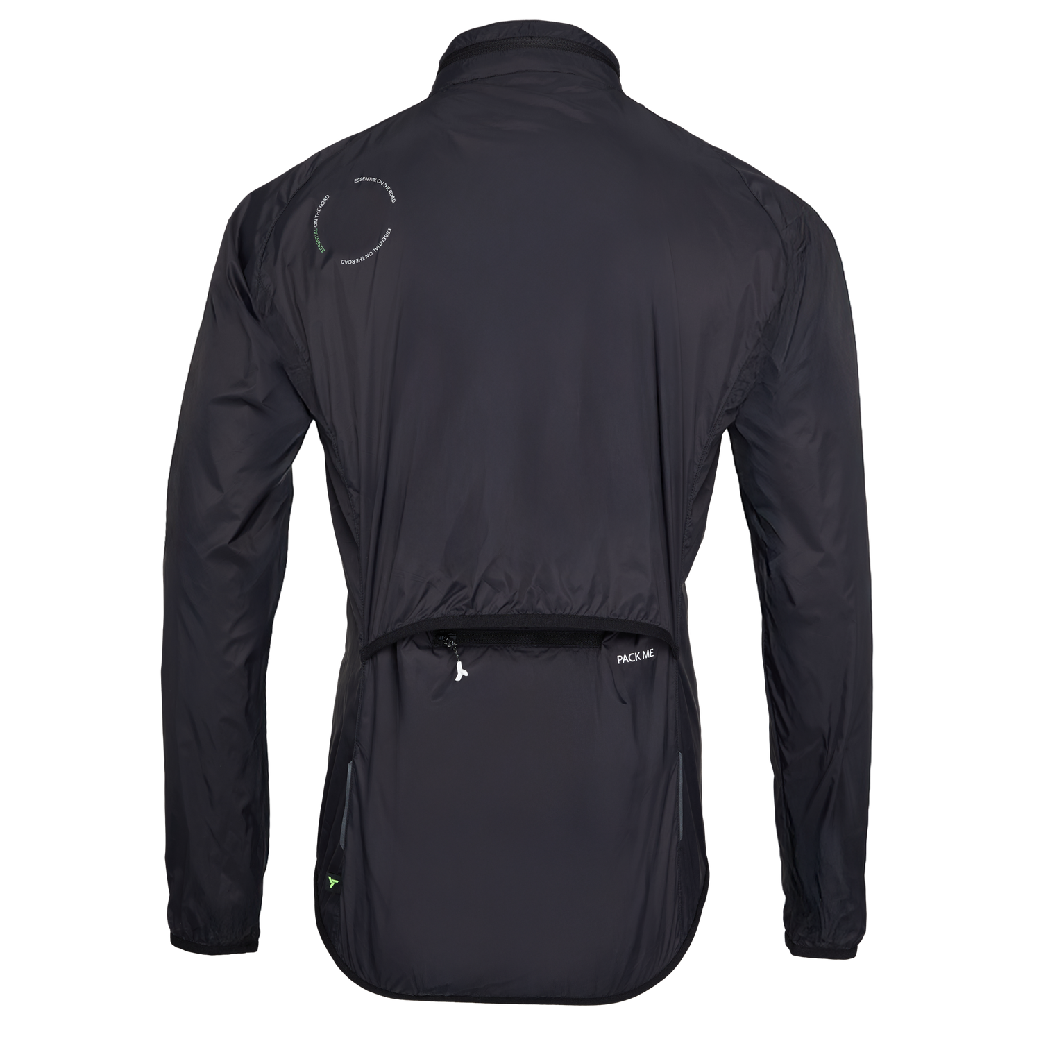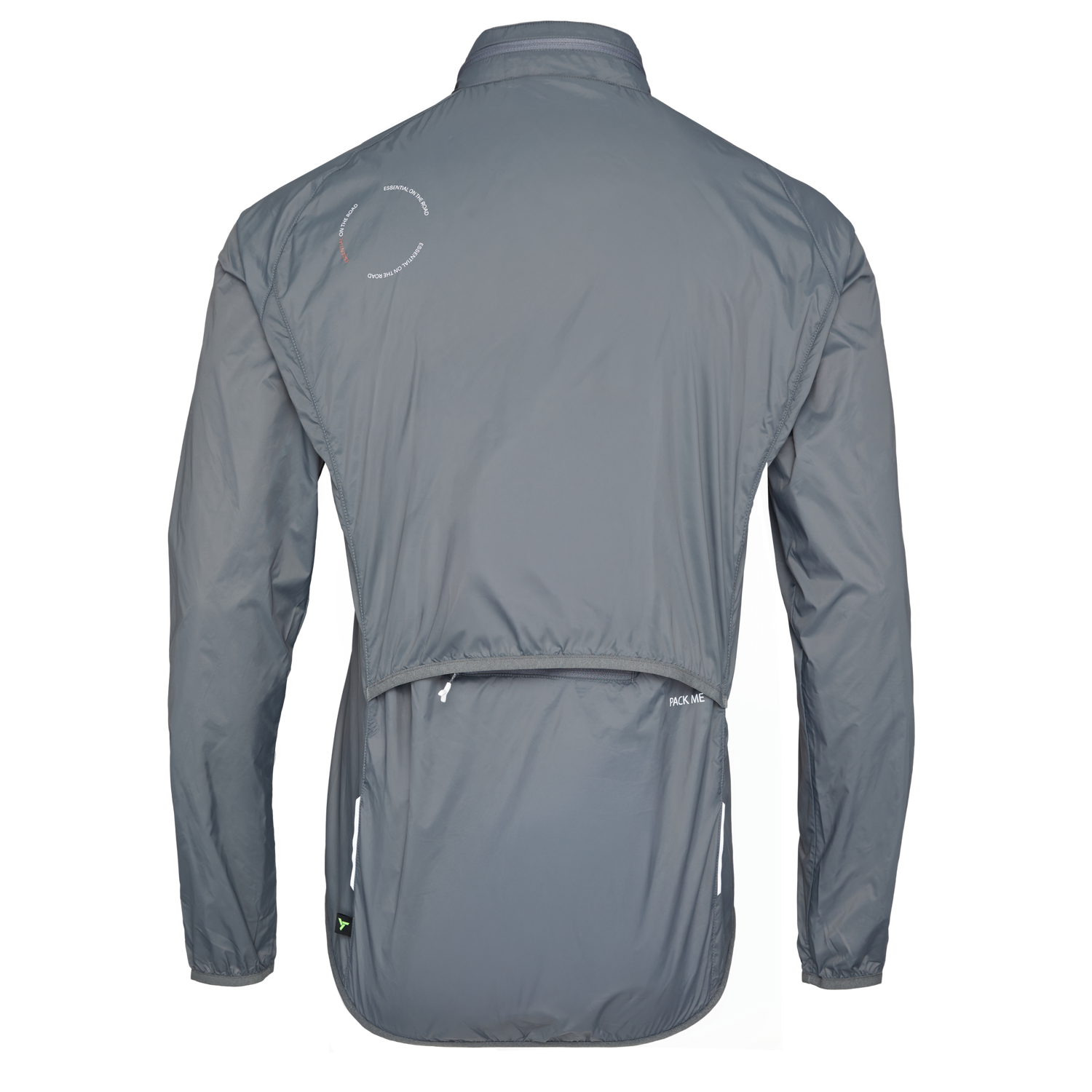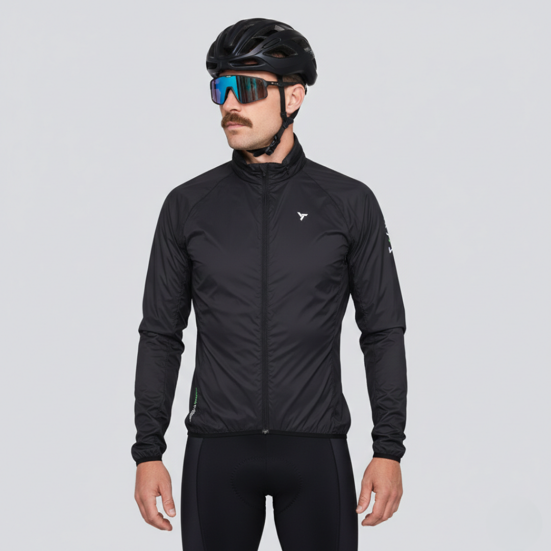La veste de cyclisme pour homme est fabriquée en matériau léger, dense et coupe-vent, avec un design pliable et une capuche qui se range dans le col.